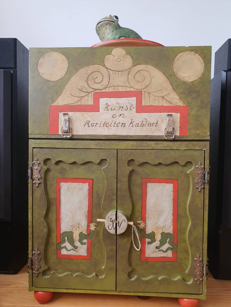 Dat kunstenaars zich ook in deze tijd nog laten inspireren door vondsten en fabels is te zien op de kunstkaarten. In de vitrine van het kabinet zijn de kunstobjecten te zien die Peter Janssen en Anna van Bohemen voor dit project hebben gemaakt. Het kabinet vormt het uitgangspunt van een kunstproject voor alle leerlingen van het primair onderwijs. Het kabinet bevat een schat aan educatieve materialen rondom het thema fossiele vondsten en mythes. Zo zijn er foto's en reproducties van kunstwerken met tekst, echte fossielen en boeken met verhalen over fabelwezens. Ook is er een cd met de verhalen van het project, verteld door Jacobus de Wilde. Voor de leerlingen van midden - en bovenbouw is er een onderzoekschriftje met opdrachten.