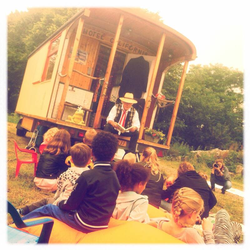 een pipowagen vol boeken, verhalen, kleding, attributen en mogelijkheden.